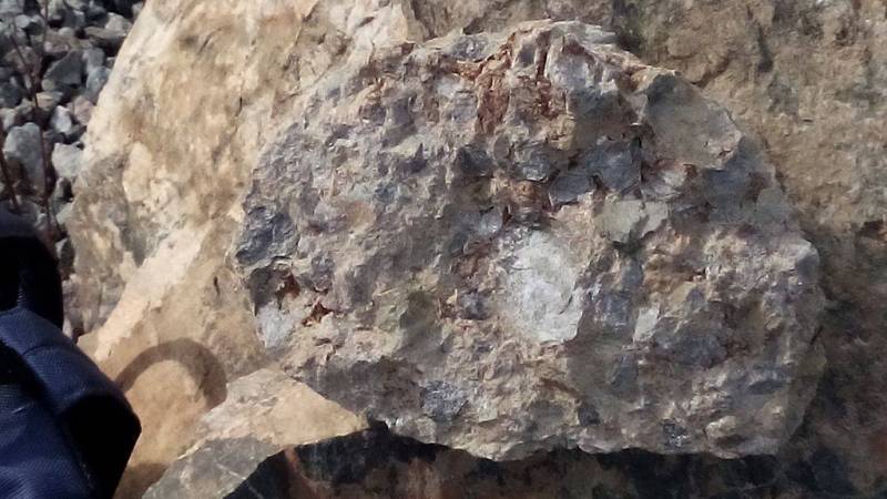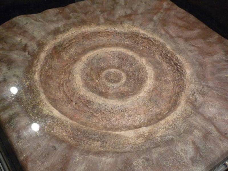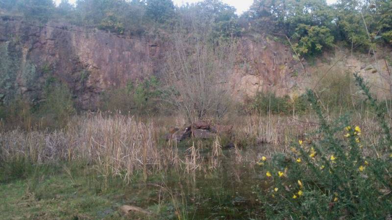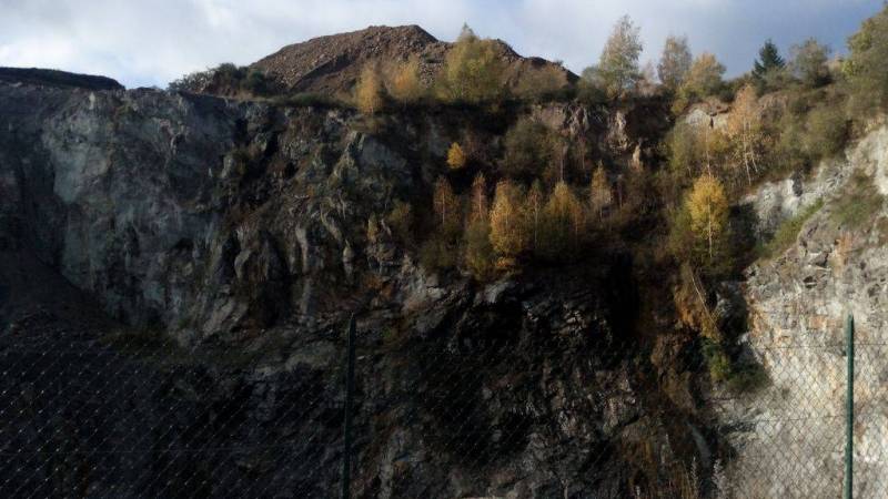 Une petite partie du fond du cratère visible en coupe, ci-dessus, dans la carrière de Champagnac.